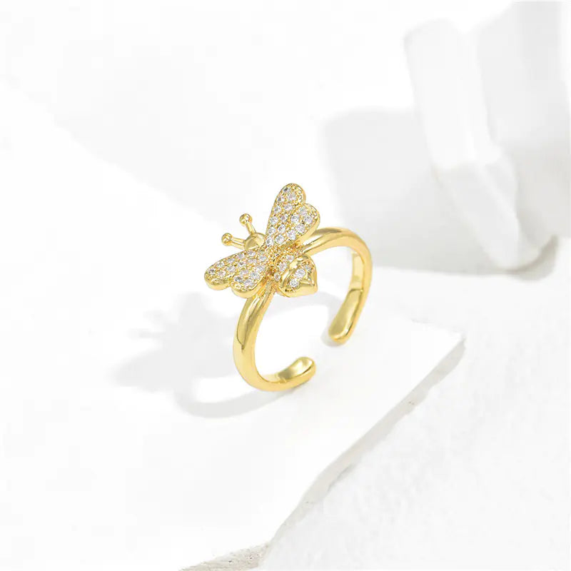 Copper Plated Gold Micro Inlaid Zircon Bee Ring